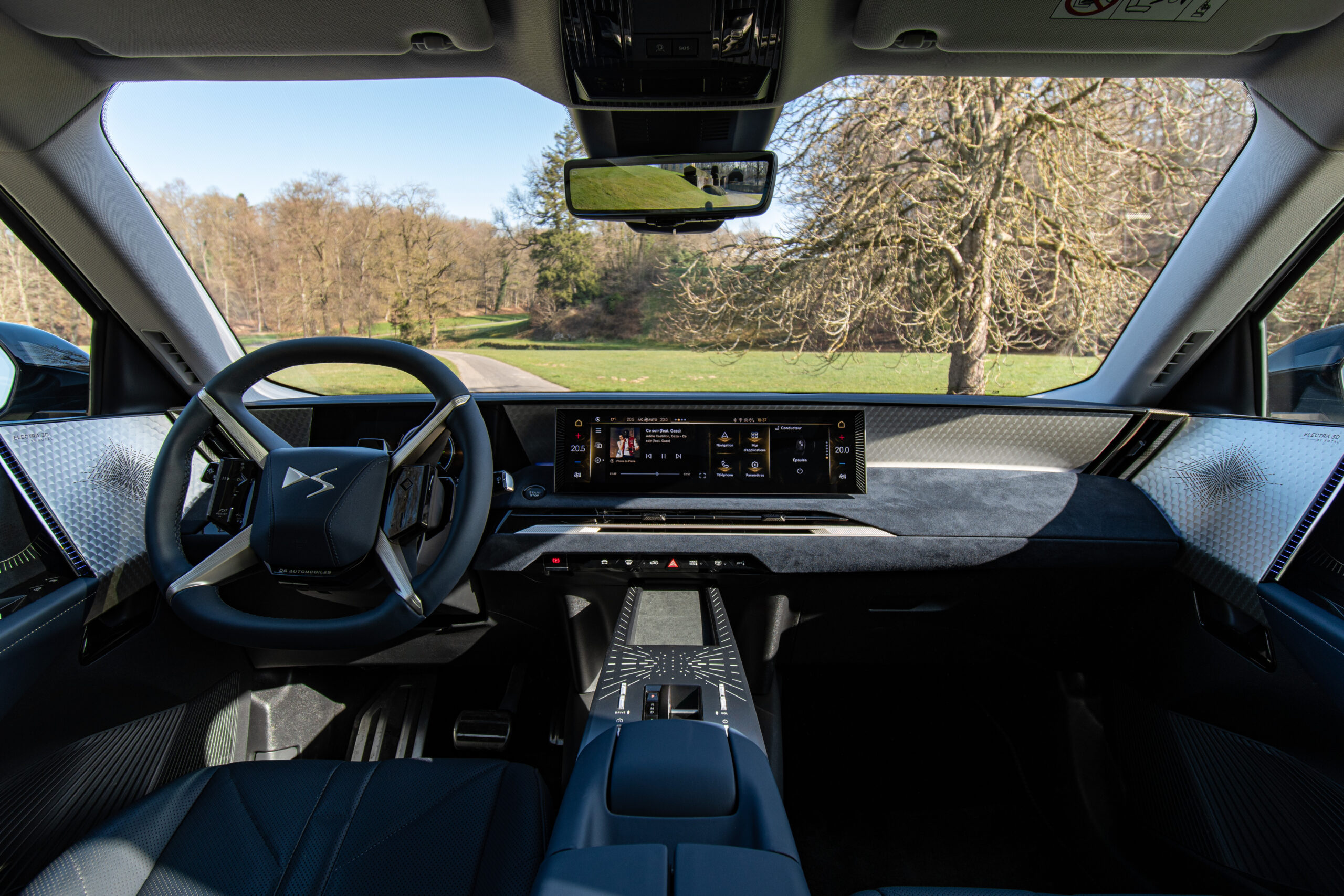 La puissance est transmise aux roues avant via une transmission à rapport unique, offrant une sensation de conduite linéaire, sans rupture. Cette configuration met en avant la vocation principale du modèle : le confort et l’efficacité sur longues distances, plutôt que la performance pure. C’est justement sur ce point que la DS N°8 se démarque nettement. Équipée d’une batterie de grande capacité (environ 97 kWh utiles), elle annonce une autonomie pouvant atteindre près de 692 km en cycle WLTP, ce qui la place parmi les meilleures de sa catégorie. En conditions réelles, elle reste particulièrement efficiente, avec une autonomie élevée même sur autoroute, ce qui en fait une véritable routière électrique taillée pour les longs trajets. La recharge rapide constitue également un atout majeur : la voiture peut récupérer une grande partie de son autonomie en peu de temps, avec une puissance pouvant atteindre environ 160 kW en courant continu, permettant de passer de 10 à 80 % en une trentaine de minutes. À cela s’ajoute un système de conduite à une pédale (One-Pedal), qui améliore la fluidité en ville et optimise la récupération d’énergie. Sur la route, la DS N°8 privilégie un comportement apaisé et maîtrisé. Le châssis, spécifiquement développé pour cette nouvelle génération électrique, absorbe efficacement les irrégularités et offre une stabilité remarquable à haute vitesse. La direction, douce mais précise, renforce cette sensation de sérénité, tandis que l’insonorisation particulièrement soignée isole parfaitement les occupants du monde extérieur.