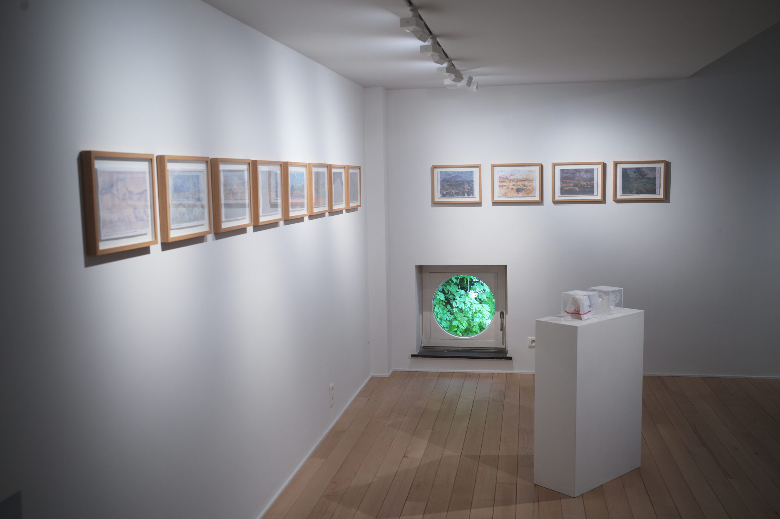 La galerie devient alors un espace à parcourir plutôt qu’à contempler. L’exposition se déploie verticalement en trois niveaux, évoquant trois états du territoire : l’atmosphère, la surface terrestre et le monde souterrain. Cette construction spatiale invite le visiteur à une déambulation libre, sans parcours imposé, qui s’apparente à une descente puis une remontée à travers des strates de matière, de sens et de temps. À mesure que l’on progresse, une cartographie implicite se dessine, révélant les liens invisibles entre les éléments naturels et les systèmes humains d’interprétation.