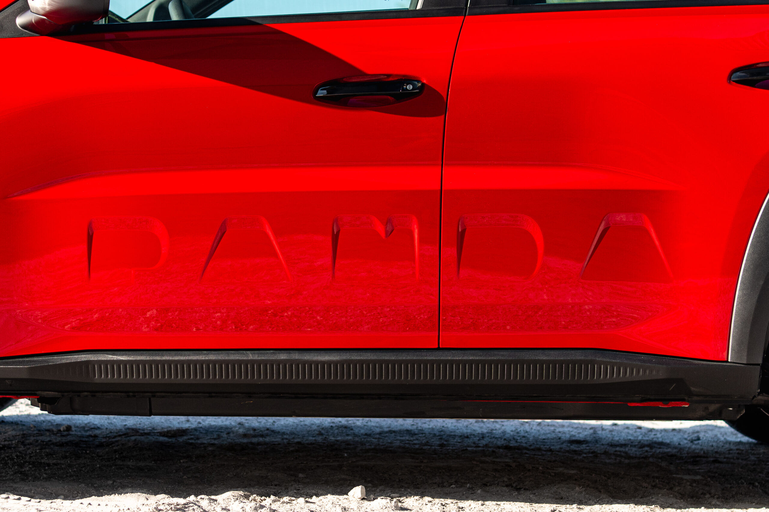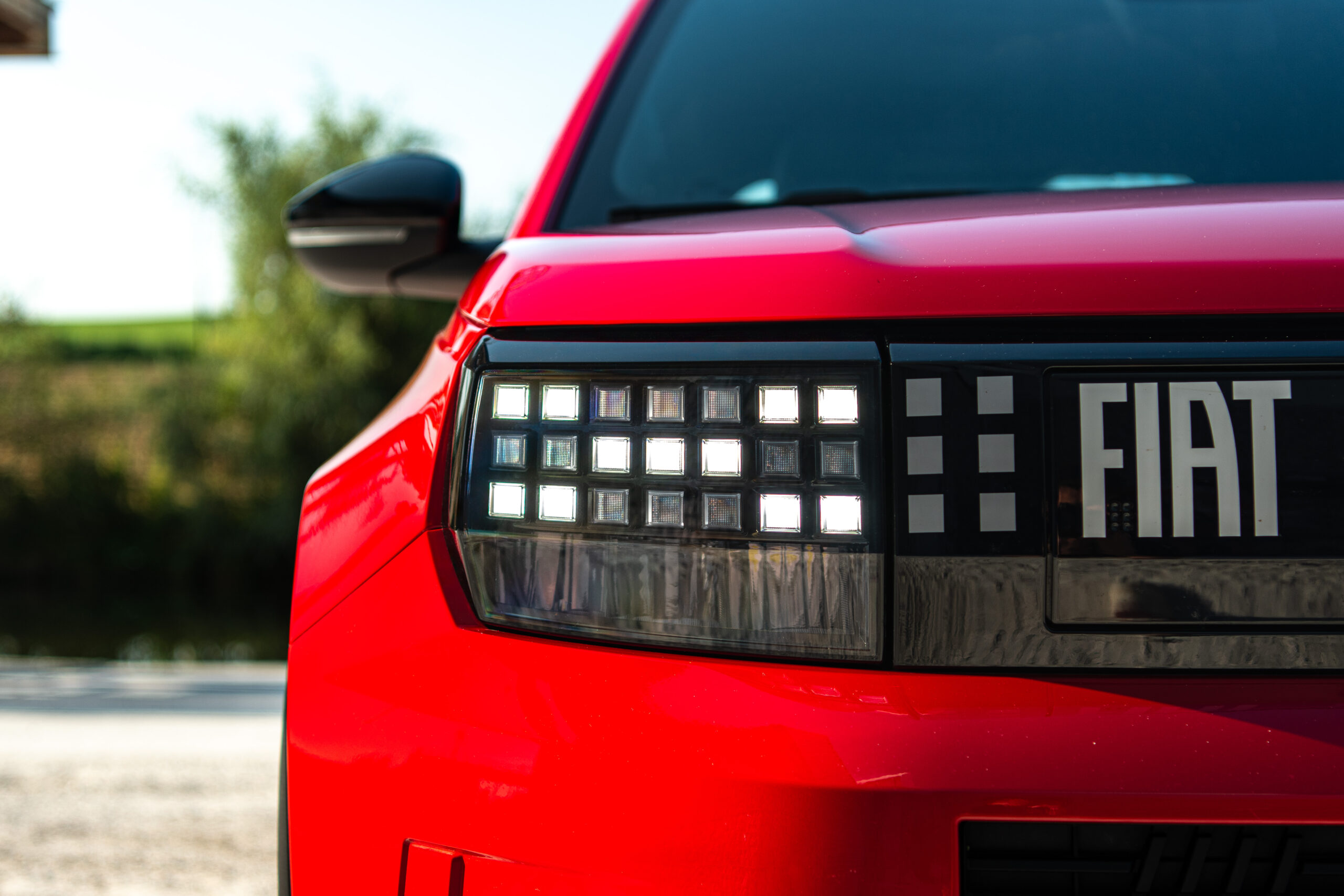 Dès le premier regard, la Grande Panda Electric affirme une identité forte. Son design s’inspire directement de la Panda originelle des années 1980, signée Giugiaro à l’époque, tout en adoptant un langage formel résolument moderne. Les volumes sont simples et assumés, les surfaces franches et les lignes nettes. La signature lumineuse à LED pixelisée, intégrée dans une face avant très graphique, confère à la voiture une personnalité immédiatement reconnaissable. Les protections de carrosserie et la garde au sol légèrement surélevée évoquent un esprit baroudeur urbain, fidèle à l’ADN pratique de la Panda.