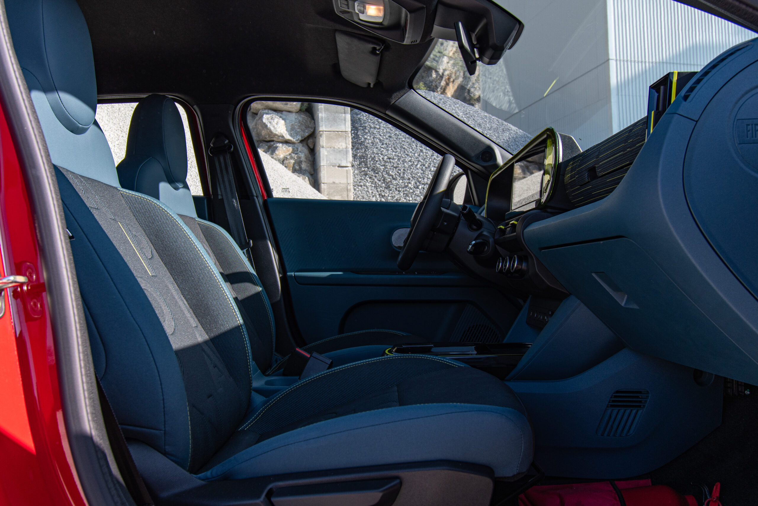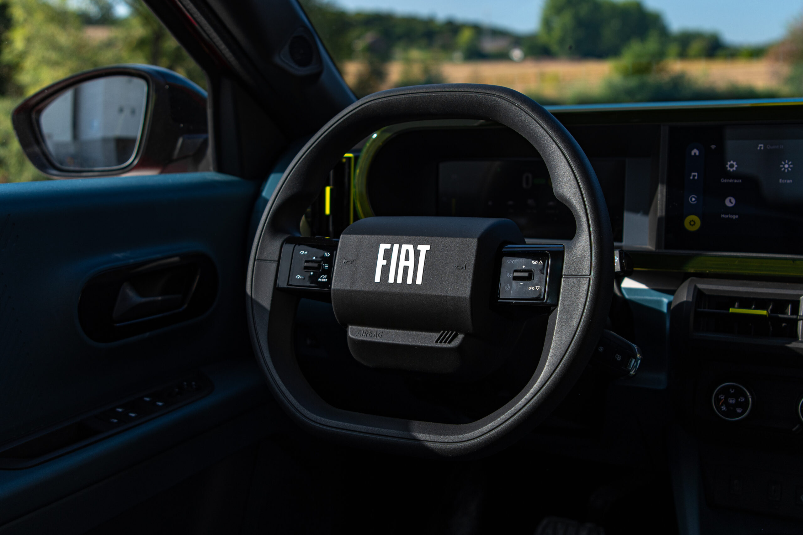 L’intérieur reflète la même philosophie que l’extérieur : fonctionnalité et modernité. La planche de bord adopte un design horizontal épuré, intégrant un écran central intuitif et une instrumentation numérique claire. Le bloc d’instruments, qui barre une grande partie de cette planche de bord, est inspiré de la piste d’essais suspendue au-dessus de la mythique usine Fiat du Lingotto, à Turin (Italie). Les matériaux, choisis pour leur robustesse, mettent l’accent sur la durabilité, avec une utilisation accrue de plastiques recyclés. L’espace à bord est optimisé, offrant une habitabilité généreuse pour le segment, tandis que le coffre se montre suffisant pour un usage quotidien.