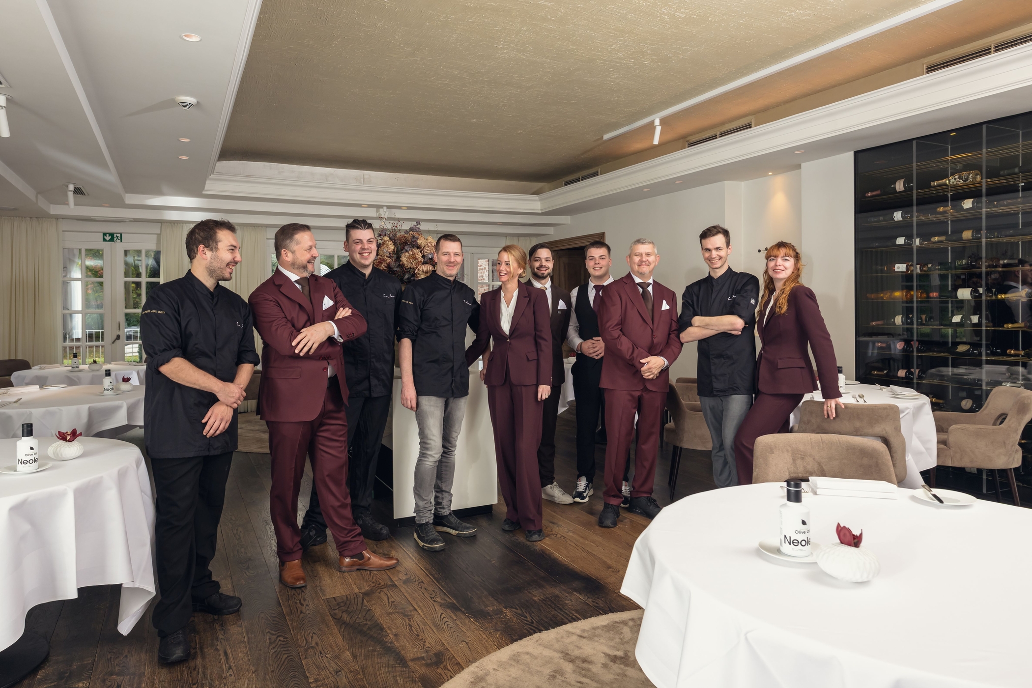Une philosophie qui se matérialise notamment à travers un déjeuner de découverte, pensé comme une porte d’entrée accessible à l’univers du chef. Mais La Source ne se résume pas à une signature culinaire. Le projet repose sur une dynamique humaine forte, portée par une équipe soudée et profondément engagée. Aux côtés de Ralph Hermans, sa femme Yvanka Vos, gérante du restaurant, orchestre l’expérience client avec une attention constante portée au détail. La sommellerie, assurée par une professionnelle aguerrie, propose des accords mets-vins d’une grande précision, prolongeant le récit gustatif imaginé en cuisine. La présence du beau-père du chef, également impliqué dans l’aventure, renforce cette atmosphère singulière, à la fois familiale et hautement professionnelle.