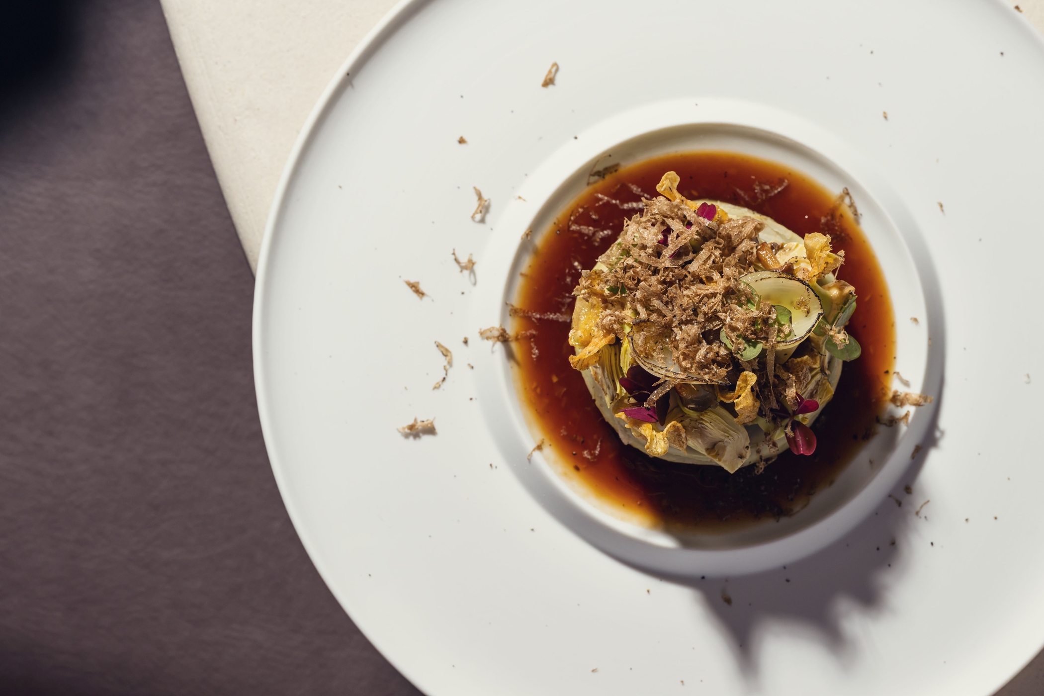 Le nom du restaurant n’est pas un hasard. La Source évoque autant la richesse naturelle qui entoure La Butte aux Bois que l’inspiration permanente puisée dans le dialogue entre nature, artisanat et créativité. Le décor, à la fois intemporel et contemporain, prolonge cette sensation d’harmonie, offrant un cadre apaisant où le temps semble suspendu.