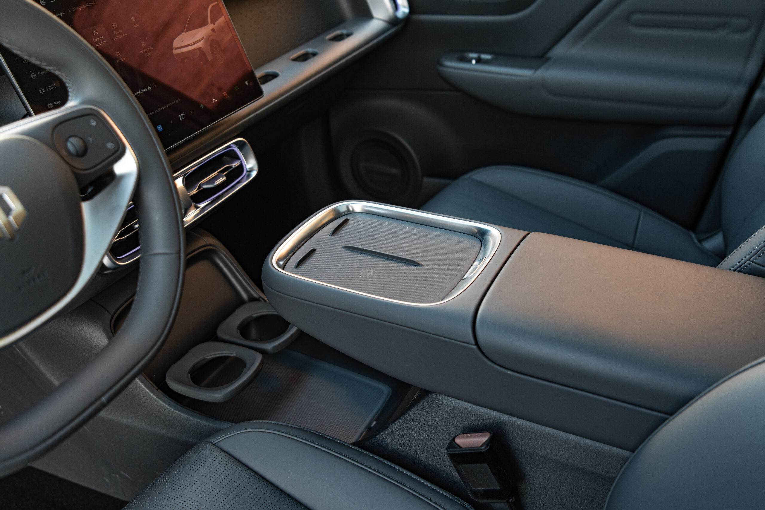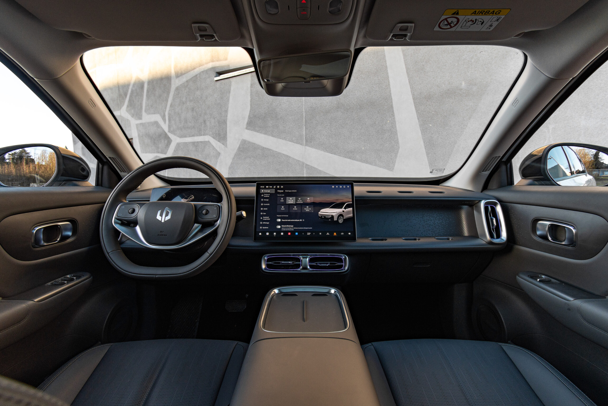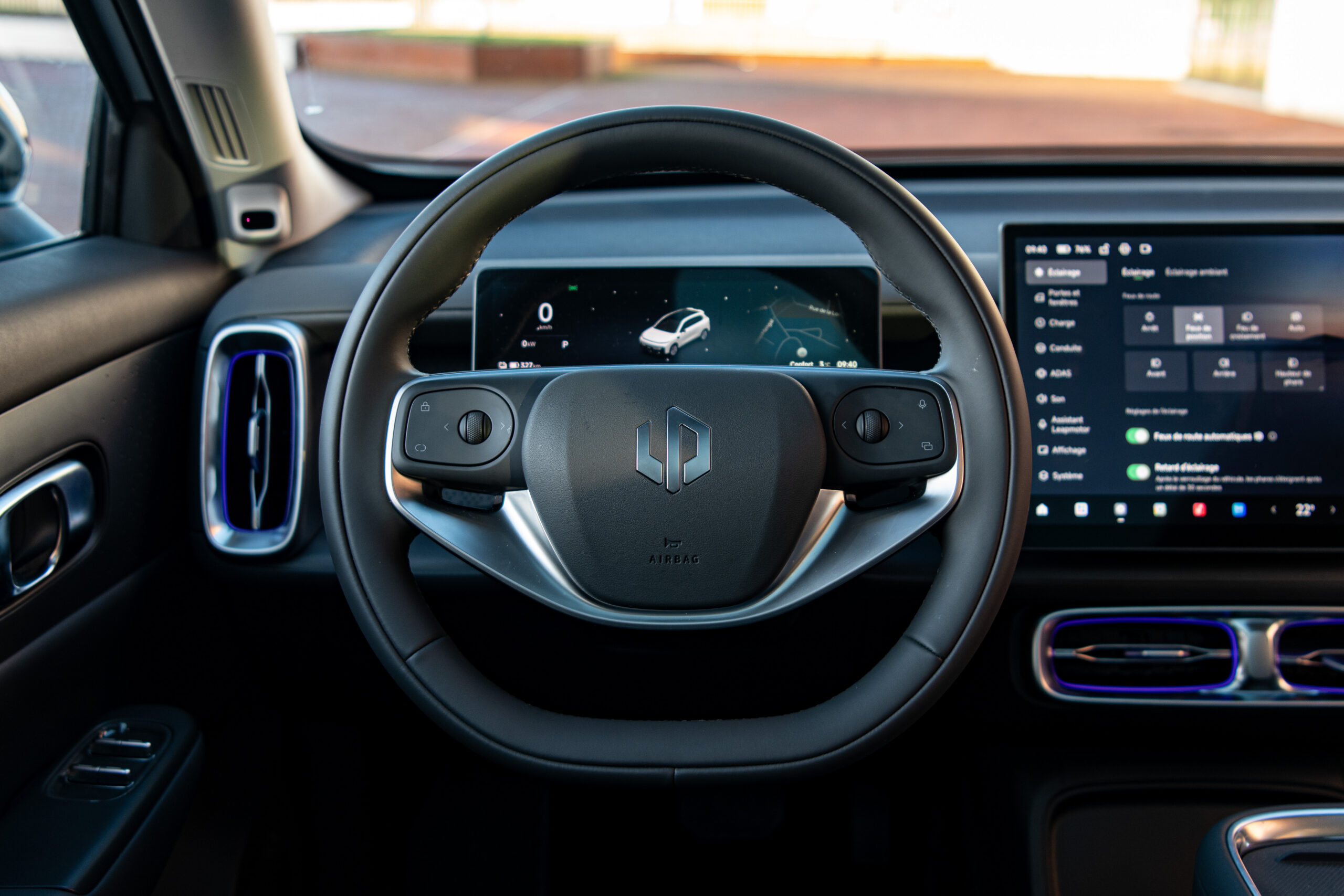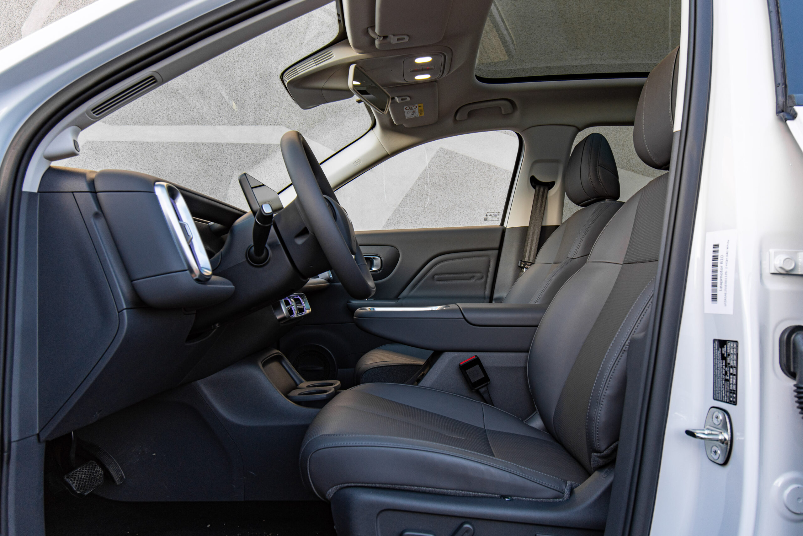 À l’intérieur, le Leapmotor B10 surprend par son ambiance moderne et une dotation technologique généreuse pour son segment. La planche de bord est dominée par un grand écran central 14,6 pouces, associé à un combiné numérique 8,8 pouces derrière le volant, tous deux intégrant le système Leapmotor OS 4.0 Plus. Celui-ci comprend des fonctions intelligentes, une interface fluide et une connectivité avancée avec des options comme Huawei HiCar, des assistants vocaux basés sur l’IA et d’autres intégrations connectées. L’habitacle met également l’accent sur le confort : sièges avant chauffants et ventilés, toit panoramique fixe de grande surface, audio de qualité, et une organisation pratique des rangements. L’espace de chargement est généreux (autour de 420 L, extensible à plus de 1.400 L avec les sièges arrière rabattus), rendant le B10 fonctionnel pour la vie de famille et les escapades du week-end. Certaines versions haut de gamme du B10 peuvent être équipées d’un capteur LiDAR haute résolution à 128 lignes, de radars mmWave, de caméras autour du véhicule et d’un système sophistiqué d’assistance à la conduite géré par un processeur Qualcomm Snapdragon Ride. Cette combinaison permet la mise en œuvre de fonctions avancées d’aide à la conduite (ADAS) et prépare la voie à des fonctions de conduite autonome en milieu urbain à l’avenir.