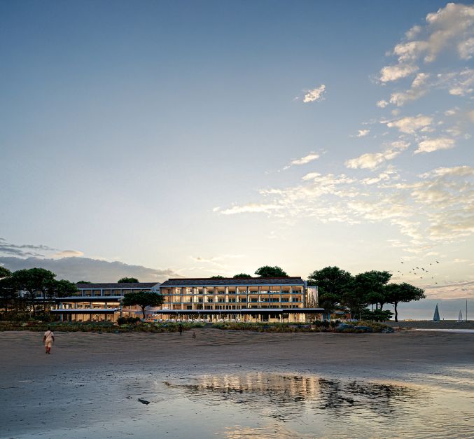 Issu de la transformation profonde de l’ancien Novotel Thalassa des années 1970, le projet marque une nouvelle étape dans la collaboration entre Accor et CLR Hôtels, filiale du groupe rochelais CGR. Ensemble, les deux partenaires poursuivent une ambition commune : proposer un luxe singulier, en dialogue permanent avec les éléments naturels et les territoires. Après La Grande Terrasse à La Rochelle et le futur MGallery de Valmorel, Oléron s’impose comme une évidence, à la croisée de la mer, de la forêt et du temps long. « Un hôtel d’âme, inspiré par la nature », résume Maud Bailly, directrice générale Sofitel Legend, Sofitel, MGallery & Emblems. Ici, tout est conçu pour ralentir. L’architecture et le design s’inspirent des maisons balnéaires oléronaises, jouant avec les bois clairs, les teintes sable et les nuances minérales.